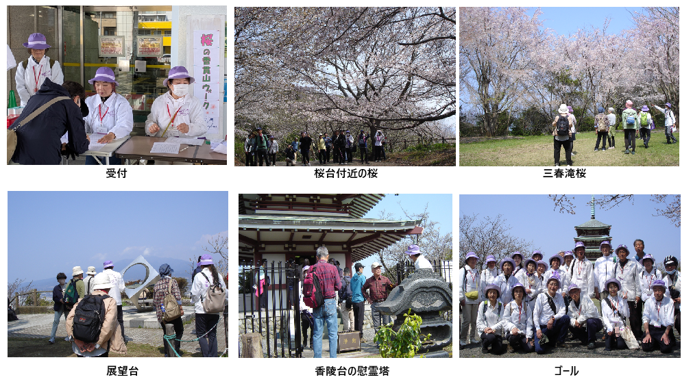 香貫山の桜は、開花~満開~やや葉桜で、花びらが紙吹雪のように舞う中、皆さん夢中でシャッターをきっていました。今回初めて、香貫山香陵台慰霊塔の内部が公開され、遺族会会長の岡本さんの説明を聞くことができました。58名の参加、本当にありがとうございました。